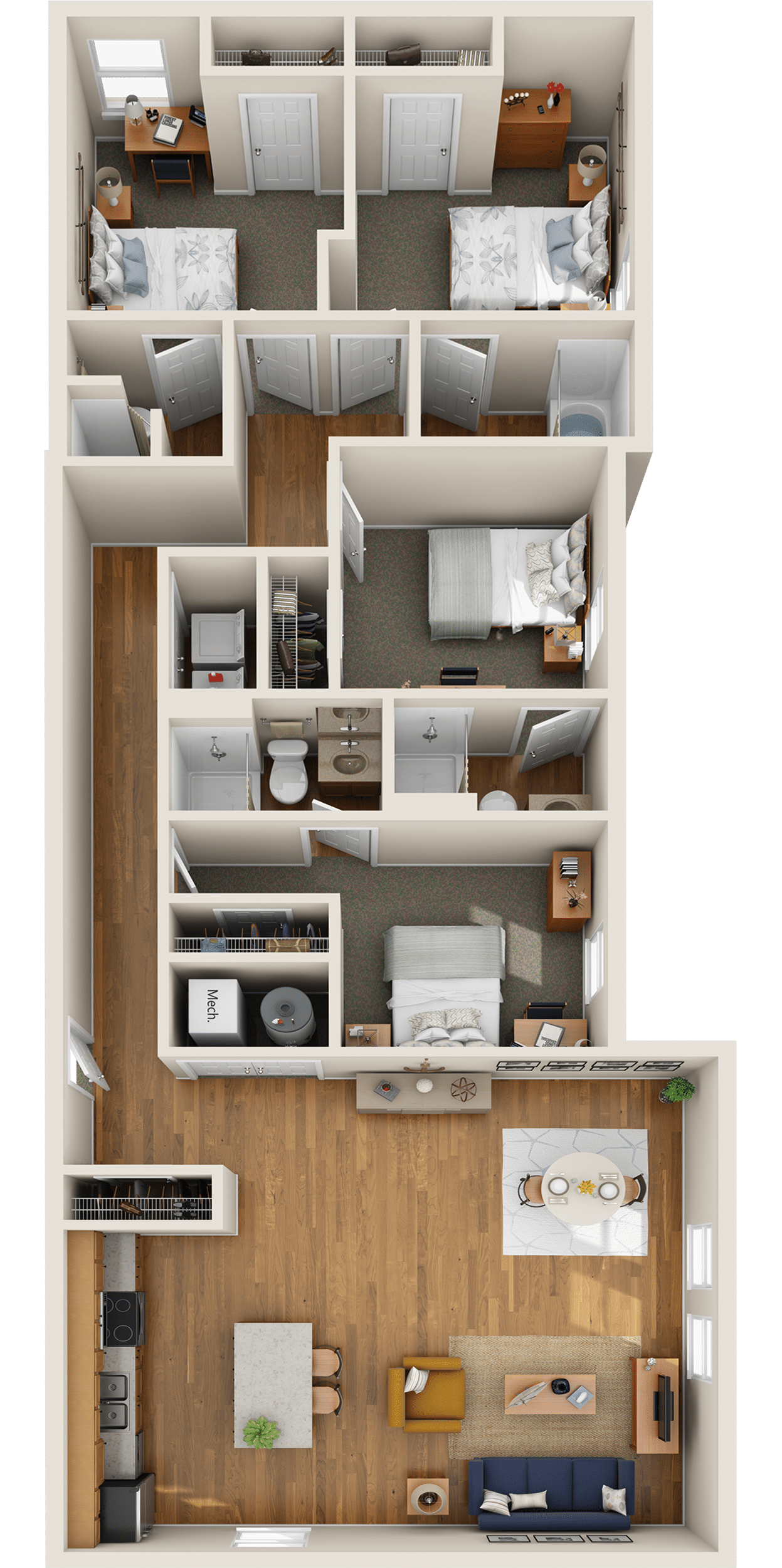 Thoughtfully designed with the unique demands of student life in mind, our affordable, upscale apartments for rent near the GVSU Campus in Allendale, Michigan, are tailored to accommodate the needs of the hardworking student.